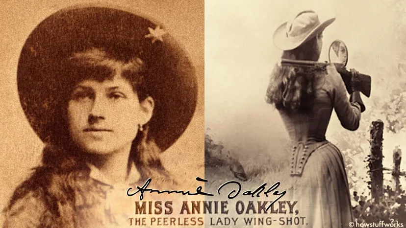Phoebe Ann Mosey aka “Annie Oakley” was born in Ohio, in 1860, and grew up to become one of the most famous American sharpshooters, starring in Buffalo Bill’s Wild West show. As a child, she developed hunting skills in order to help provide for her impoverished family. By age 15 she won a shooting contest against Frank E. Butler, who she then married in 1876. In 1885, she joined up with Buffalo Bill and quickly became the star of the show, performing all across the country and Europe, before royalty and heads of state. One of her popular stage acts involving shooting a cigar out of her husband’s hand. She even performed for one of Thomas Edison’s earliest Kinetoscope films in 1894!